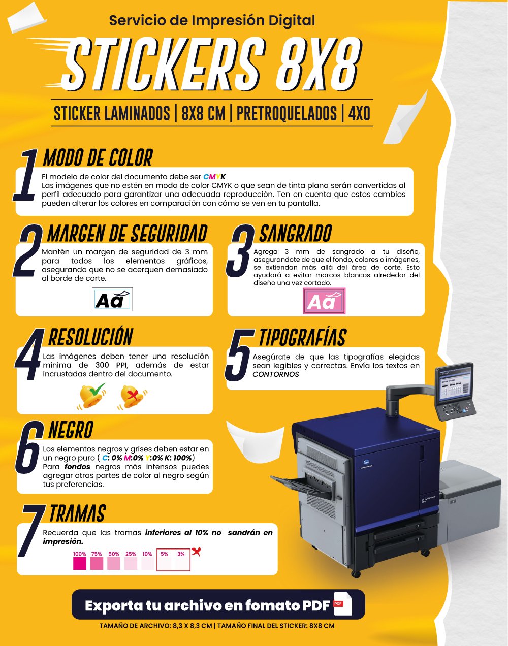 STICKER LAMINADO | 8X8 CM | PRETROQUELADOS